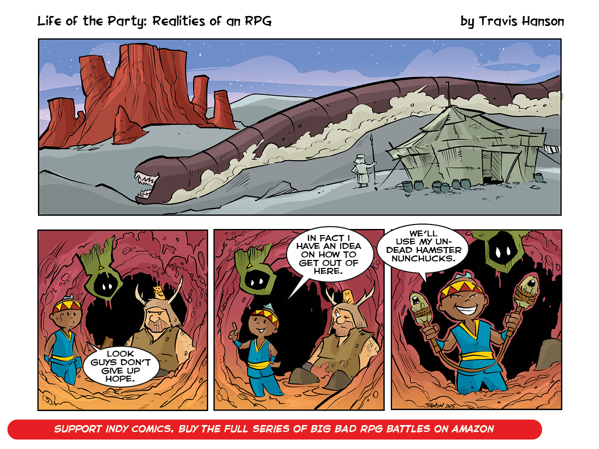 Travis Hanson is an Eisner nominated fantasy illustrator with a huge imagination. His works include comics, children's art, fantasy and just fun illustrations that encourages the need for people to be creative. For more information on Trav's works, rates and ideas, just send a note to thanson@beanleafpress.com